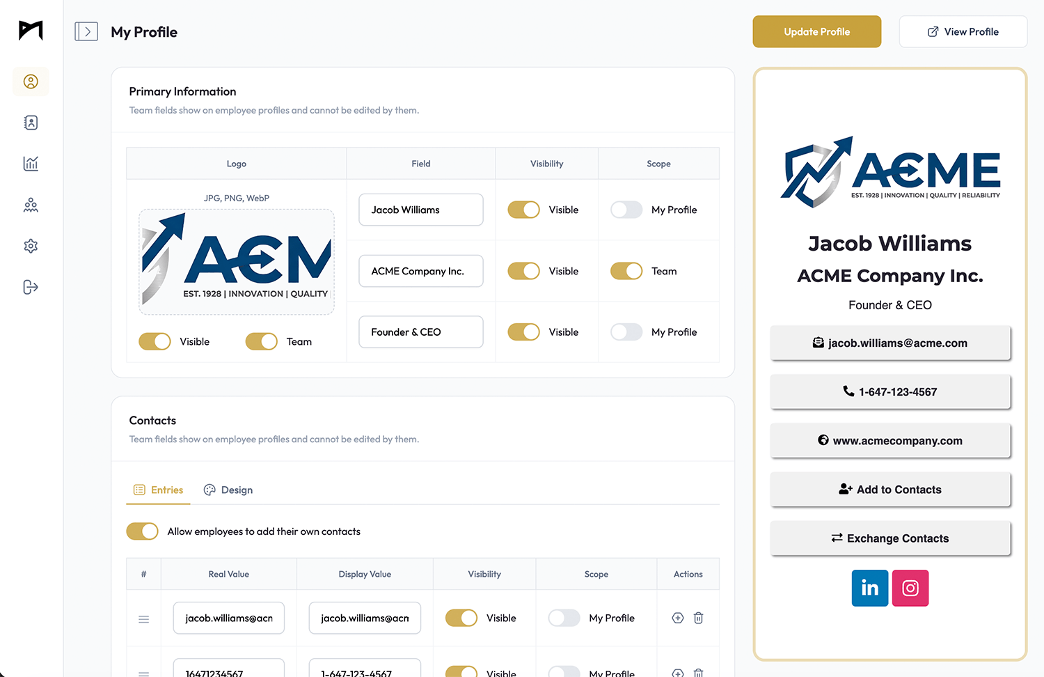 Take full control of your identity through our intuitive web app, which enables you to update your digital business card anytime, anywhere.